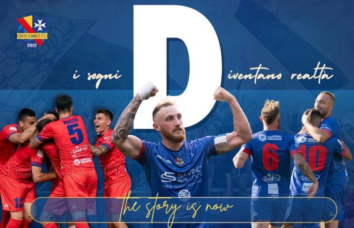 Una domenica divina. La Costiera Amalfitana ha festeggiato lo storico traguardo della promozione nel campionato di calcio di Serie D del Costa d’Amalfi. La società del presidente Savino ha coronato un sogno al termine del doppio confronto col Bisceglie. A Maiori si partiva dall’uno a uno dell’andata in Puglia, ieri proprio gli ospiti hanno rotto la parità nel primo tempo costringendo la squadra allenata da Proto, il cui vice è l’ex granata Genco, a rincorrere. Caputo ha pareggiato i conti a metà ripresa rimandando il verdetto ai supplementari. Una pennellata su punizione di Pepe ha mandato in estasi gli amalfitani scatenando l’entusiasmo di squadra e tifosi che si sono ritrovati a festeggiare insieme per le vie di Maiori qualche ora dopo la gara. Una cavalcata avvincente e vincente per il Costa d’Amalfi che in D sarà una matricola con la voglia di stupire. Alle viste il trasferimento da Maiori a Tramonti per le gare interne, ma ora è tempo di festeggiare.