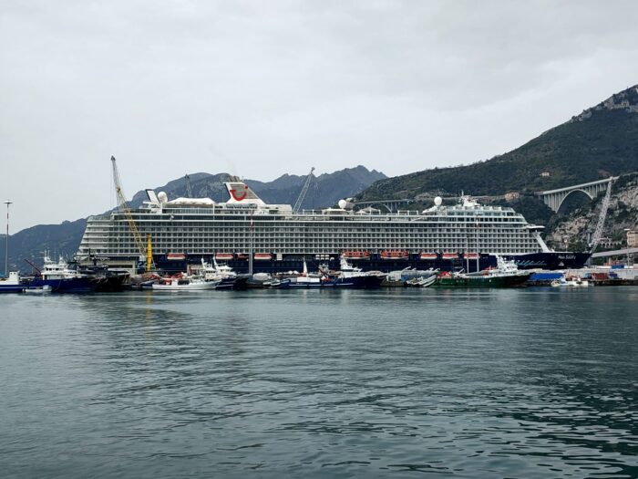 La presenza di tanti crocieristi al Molo Manfredi e sullo sfondo l’esclusiva e lussuosa nave Mein Schiff 6, ha rappresentato stamani nonostante le difficoltà ancora legate alla pandemia e al conflitto bellico, la voglia e la speranza di ripartenza, di un ritorno verso un’auspicata normalità, un’occasione importante per la crescita e per il futuro. Benché si tratti di scali di breve durata Il turismo crocieristico è un’opportunità per la città di Salerno, accogliere e accompagnare i passeggeri prestando loro assistenza conoscendone la lingua per fornire informazioni sui luoghi, le bellezza artistiche, naturali, culturali e tradizionali della città di Salerno risultano di fondamentale importanza. Mercoledì nuovo attracco questa volta dalle nave Mein Shiff 5 con arrivo alle 7.30 e ripartenza alle 19.30.