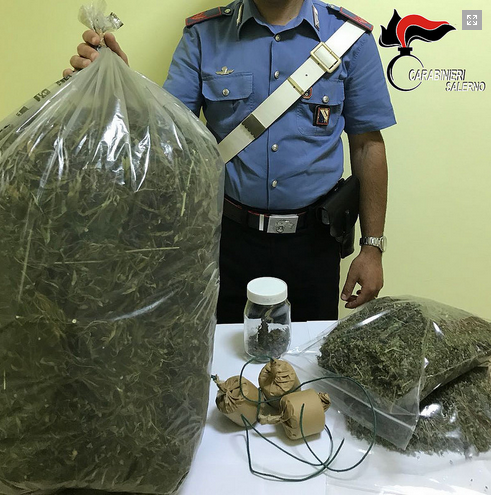 I militari di Buonabitacolo, coaudiuvati dagli uomini del Nucleo Carabinieri Cinofili di Sarno, hanno perquisito l’abitazione dell’uomo entrato nel mirino dei Carabinieri dopo essere stato notato frequentemente in movimento durante le ore notturne. All’interno del garage, i militari hanno rinvenuto oltre 4 chilogrammi di marijuana occultate all’interno di scatole di polistirolo, barattoli di Nutella, buste e cartoni. Inoltre, sono state ritrovare anche tre bombe carta.