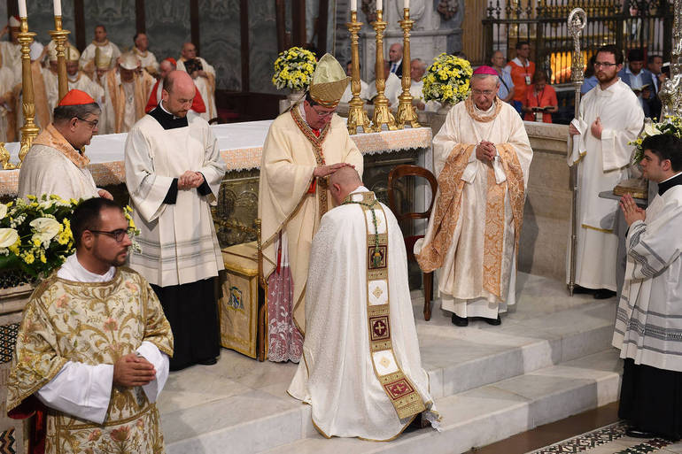 della Cattedreale presenti ben 282 sacerdoti, 50 vescovi dalla Campania, dalla Toscana e da altre regioni, e 4 cardinali: cardinale Giuseppe Betori, Arcivescovo di Firenze, e al cardinale Crescenzio Sepe, Arcivescovo di Napoli, che hanno impartito l’ordinazione a mons. Bellandi insieme all’arcivescovo di Taranto Filippo Santoro,