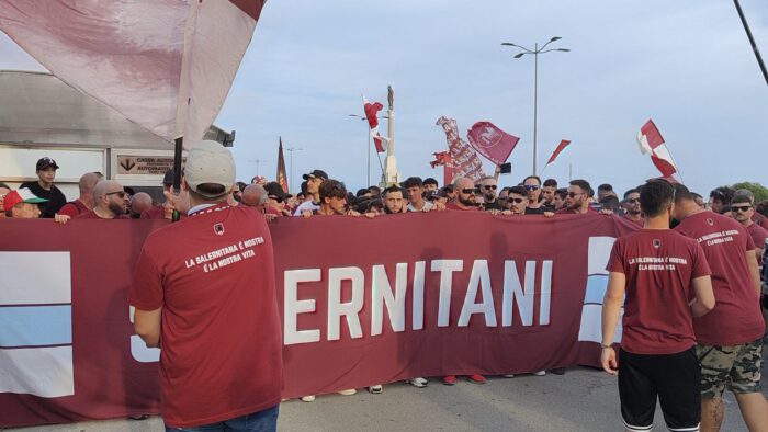 Una festa popolare, aperta a tutte le generazioni di tifosi, grandi e piccoli insieme in strada come ad ingrossare le fila di uno sciame di orgoglio e passione. La Salernitana è stata festeggiata ieri dalla sua gente, da chi c’era ai tempi del Vestuti e chi ha visto solo l’ultimo pezzo di strada ma vuole esserci ora e domani. Dalle 19:19 in Piazza della Concordia fino all’arrivo in Piazza Casalbore un’ora dopo, il corteo per i 104 anni di vita e di storia della Salernitana è stata un percorso nella memoria ed uno sguardo verso il futuro. Padri e figli, nonni e nipoti, famiglie intere e gruppi di tifosi di tutte le età si sono ritrovati dietro un unico striscione portato in giro dagli ultras e preceduto da un altro, quello con la scritta Appartenza tra due ippocampi, sostenuto dalle braccia di tanti bambini che hanno poi intonato un coro insieme a Ciccio Rocco una volta giunti a destinazione. Il ricordo del Siberiano, lo sventolio di vessilli e i cori incessanti che hanno scandito la marcia gioiosa, intrisa ad ogni passo di amore, ricordi e grandi speranze per il futuro hanno riconfermato il rapporto forte e viscerale tra la Salernitaa e la sua gente che poi ha festeggiato in piazza, senza bisogno di effetti speciali ed ospiti illustri. Il capitano di mille battaglie Luca Fusco, accompagnato dal figlio Gerardo, ed una delegazione del club granata composta dal team manager Avallone, dallo Slo Domenico Napoli e dall’addetto stampa Lambiase ha portato il saluto del club alla folla. Lo spettacolo delle torce che sul far della mezzanotte hanno illuminato il piazzale antistante il glorioso Vestuti ed il taglio della torta offerta dagli Ums hanno chiuso una giornata di festa all’insegna della tradizione e dell’appartenenza, una giornata vissuta in strada dalla gente, per la gente, con la gente. Perché la Salernitana è passione popolare e filo invisibile che unisce intere generazioni.