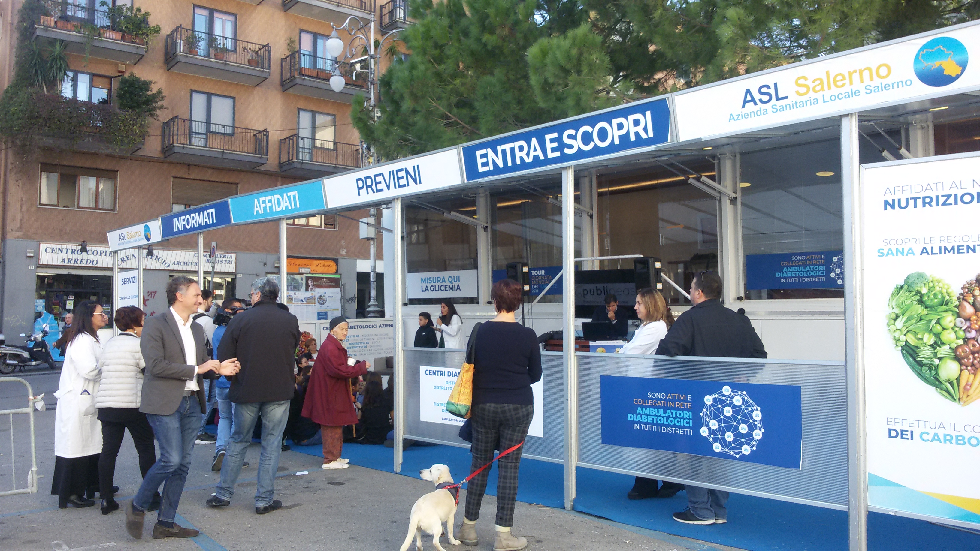 Un punto di screening con l’obiettivo di sostenere il controllo e la cura del diabete e delle sue complicazioni attraverso l’informazione, la prevenzione e la ricerca. Ha fatto tappa questa mattina in piazza Casalbore il tour promosso dall’Asl di Salerno in occasione della Giornata Mondiale contro il Diabete, che ricorre il 14 novembre, dedicata a questa malattia cronica, talora invalidante e potenzialmente letale, fra le più costose per il sistema sanitario regionale per i malati e per i loro familiari.