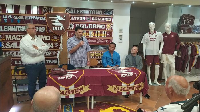 Partecipazione nutrita e calorosa ieri sera al “Fan’s Shop” di Salerno per la presentazione del romanzo sportivo scritto dal giornalista Marco Vecchione e pubblicato da “Fan’s Shop Edizioni” sul campionato di serie A 2021\22, concluso con l’impresa sportiva della squadra granata. L’incontro, moderato dal direttore di SalernitanaLive Umberto Adinolfi, ha visto gli interventi dell’autore, dell’editore Giuseppe Nasti e dell’ex gloria granata Roberto Merino.
