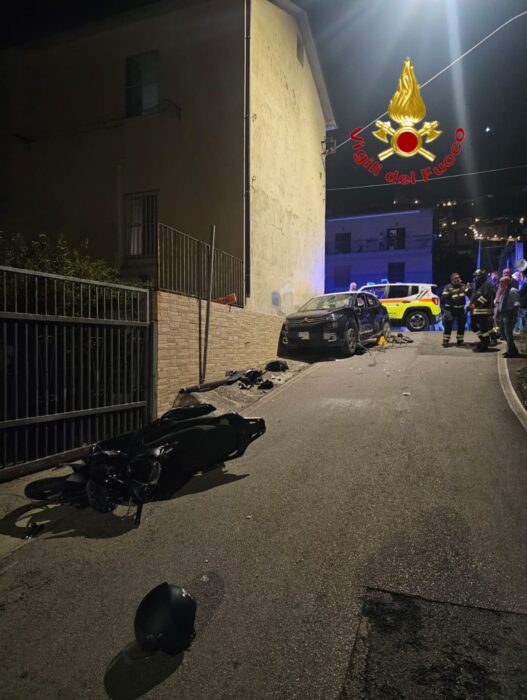 Per cause ancora in fase di accertamento, la moto si è scontrata in via Taverne con una Citroën C3 guidata da una donna.