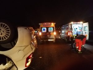 Brutto incidente stradale lungo l’autostrada A2 del Mediterraneo all’altezza dello svincolo di San Mango Piemonte. Una Fiat Punto stava percorrendo la corsia in direzione nord quando, per cause ancora non chiare, ha compiuto una brusca manovra che ha tagliato la strada a due centauri che erano di ritorno da un pomeriggio di shopping. Nell’incidente e’ rimasta coinvolta anche un’altra vettura con la Fiat Punto che si e’ ribaltata. Nell’impatto sono rimaste ferite cinque persone con il conducente della Fiat Punto che ha riportato una frattura scomposta al ginocchio sinistro. Feriti anche gli occupanti dell’altra vettura ed i due motociclisti. Sul posto sono giunte le ambulanze dei volontari dell’Humanitas per le cure del caso. Incidente che ha creato non pochi problemi alla viabilita con il traffico che e’ rimasto paralizzato per diverse ore.