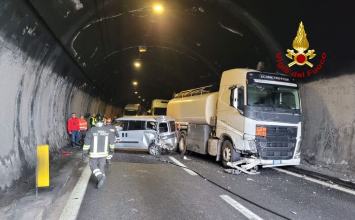 Incidente stradale poco prima delle 15 lungo l’Autostrada A2 del Mediterraneo all’interno galleria del Seminario poco prima dello svincolo per Salerno centro in direzione dell’imbocco autostradale Salerno – Napoli. Per cause da accertare è avvenuta una collisione tra un’autocisterna che trasportava gasolio e due autovetture probabilmente in coda per lo svincolo. Ad avere la peggio l’uomo alla guida di una delle due autovetture per il quale è stato necessario l’intervento dei Vigili del Fuoco. A causa del blocco della circolazione, i caschi rossi, coadiuvati dalla polizia stradale, hanno dovuto raggiungere il luogo dell’incidente imboccando contromano la carreggiata per poi procedere al soccorso del malcapitato ed affidarlo alle cure dei sanitari e alla messa in sicurezza dei mezzi coinvolti. Così come per i vigili del fuoco anche il 118 e la polizia stradale hanno avuto difficoltà a raggiungere il posto a causa del blocco totale della circolazione causato dall’incidente.