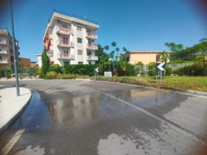 Nella grande aiuola di via Arturo Carucci, alle spalle del nuovo complesso residenziale Porta del Mare, nell’area dell’ex Marzotto, gli irrigatori automatici sono attivi 24 ore su 24 senza interruzione. Un flusso continuo d’acqua che, invece di nutrire le piante, finisce spesso per riversarsi sulla carreggiata, trasformando la strada in una sorta di ruscello urbano, con pozzanghere stagnanti che poi finiscono nella rete fognaria.