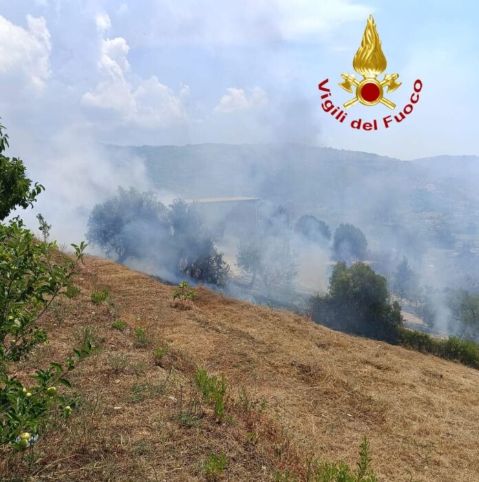 Grosso incendio di sterpaglie, in atto dalle 12:00 circa, in località Crocicchie ad Agropoli. La squadra dei Vigili del Fuoco del locale distaccamento e quella di Eboli, supportate da un’autobotte, stanno lavorando per avere la meglio sull’incendio che ha lambito anche abitazioni oltre ad aver coinvolto parzialmente un’autovettura. Sul posto anche il DOS (Direttore delle Operazioni di Spegnimento) da Vallo della Lucania, per valutare l’eventuale necessità dei mezzi aerei per estinguere definitivamente l’incendio che al momento ha coinvolto circa 10 ettari di verde.