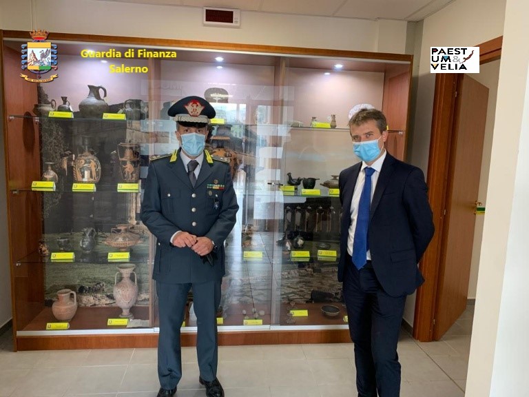 Quale rappresentante, nell’intera provincia, della Guardia di Finanza, sempre in prima linea nella salvaguardia del patrimonio artistico, il Generale Petrucelli ha scoperto, insieme al Dottor Zuchtriegel, la vetrina allestita per l’esposizione di una piccola parte dei numerosissimi reperti raccolti, normalmente custoditi nei magazzini del Museo.