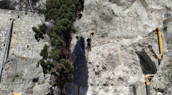Sotto gli occhi soddisfatti del Sindaco di Amalfi, Daniele Milano, poco dopo le 13 della giornata di oggi, hanno preso il via ad Amalfi i lavori per la posa dei pali sui quali poggerà la nuova strada statale 163, nella fase finale dell’intervento che consentirà di ripristinare la circolazione stradale interrotta dallo scorso 2 febbraio quando una frana ha diviso in due la Divina. La palificazione sarà la base della nuova strada: ci sono più squadre che lavorano anche di sera ed in realtà sono tre cantieri perché in uno si sta operando anche sull’arco per fare un’operazione di consolidamento. In un’intervista, durante il sopralluogo nel cantiere, il sindaco Daniele Milano ha confermato che i lavori stanno procedendo in maniera celere e si spera di completarli nel più breve tempo possibile per alleviare dei disagi la popolazione, alla luce anche già di tutti i problemi legati all’emergenza sanitaria.
