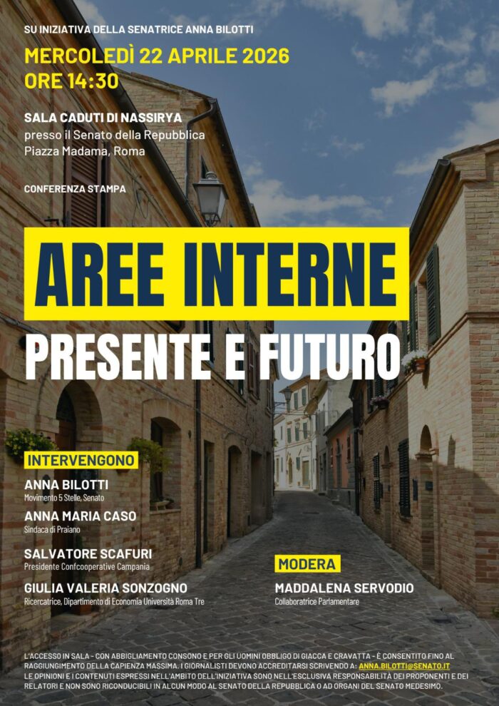 «Aree interne, presente e futuro» è il titolo della conferenza stampa promossa dalla senatrice del Movimento 5 Stelle, Anna Bilotti, in programma mercoledì 22 aprile alle ore 14.30 nella Sala Caduti di Nassirya del Senato a Roma. L’iniziativa intende accendere i riflettori sul ruolo strategico delle aree interne nel rilancio economico e sociale del Paese. All’incontro interverranno, oltre alla parlamentare salernitana, la sindaca di Praiano, Anna Maria Caso, il presidente di Confcooperative Campania, Salvatore Scafuri, e la ricercatrice del Dipartimento di Economia dell’Università Roma Tre, Giulia Valeria Sonzogno. «Il mio impegno per le aree interne – ricorda Bilotti – viene da lontano. Già alla Camera, da deputata, fu presentata la proposta di legge a mia prima firma “Misure per lo sviluppo e la rigenerazione economica e sociale dei comuni delle aree interne”. Proposta di legge che ho ripresentato da senatrice e che sarà uno dei temi al centro della conferenza stampa di mercoledì». «Le aree interne – sottolinea la senatrice – rappresentano una risorsa decisiva per il futuro del Paese e sono un punto da cui ripartire. Ma, per farlo, bisogna creare le condizioni perché le persone possano scegliere di vivere in questi territori, assicurando pari diritti e servizi, dalla sanità ai trasporti alla scuola, rispetto a chi vive nelle aree più centrali e meglio servite. Da qui nasce il presupposto della proposta di legge». «Questa iniziativa legislativa propone come requisito indispensabile a livello locale – prosegue – il percorso di aggregazione dei servizi, con un meccanismo di premialità per i Comuni in grado di superare i propri limiti e interessi amministrativi, a favore di un’organizzazione associativa in grado di rappresentare nei fatti una vera comunità interna». «Tra le principali misure previste dalla proposta di legge – ricorda – ci sono incentivi all’insediamento abitativo, con un rimborso del 50% delle spese sostenute, una riduzione dell’imposta sul reddito per le nuove attività economiche, siano esse agricole, artigianali o turistiche, la riorganizzazione dei presidi ospedalieri esistenti da parte delle Regioni e la possibilità di mantenere la personalità giuridica alle istituzioni scolastiche anche con meno di 400 studenti. Sono, inoltre, previsti fondi per garantire il diritto alla mobilità e per la promozione turistica attraverso il brand “Italy Inside”». «Si tratta di una legge articolata che, se approvata, potrà incidere in maniera significativa sul futuro dei nostri Comuni e dei nostri territori», conclude Bilotti.
