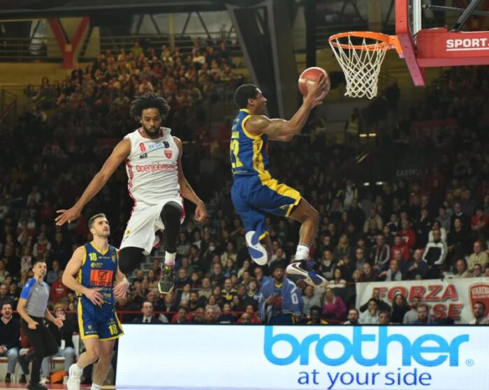I centri di Logan e Gentile riportano i gialloblù in doppia cifra di vantaggio all’11’ (20-32). Il momentaneo massimo vantaggio scafatese (+14) è firmato da Strelnieks in penetrazione un minuto più tardi (20-34). Gli attacchi hanno ragione delle rispettive difese, non solo in termini di prolificità offensiva, ma anche di ritmo, velocità e spettacolarità. Hanlan è sempre l’uomo più pericoloso tra le fila di casa, ma da solo non basta a fermare Logan e compagni, bravi a conservare un cospicuo vantaggio (34-43 al 15’). Gli ultimi minuti del primo tempo hanno un protagonista assoluto: Davide Moretti. Gli ultimi 13 punti di Varese portano la sua firma e si rivelano necessari per il 49-55 con cui si chiude la prima parte di una gara fin qui a dir poco effervescente.