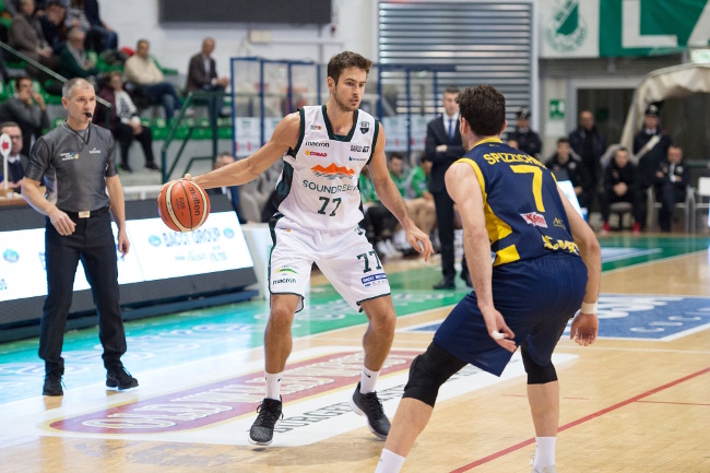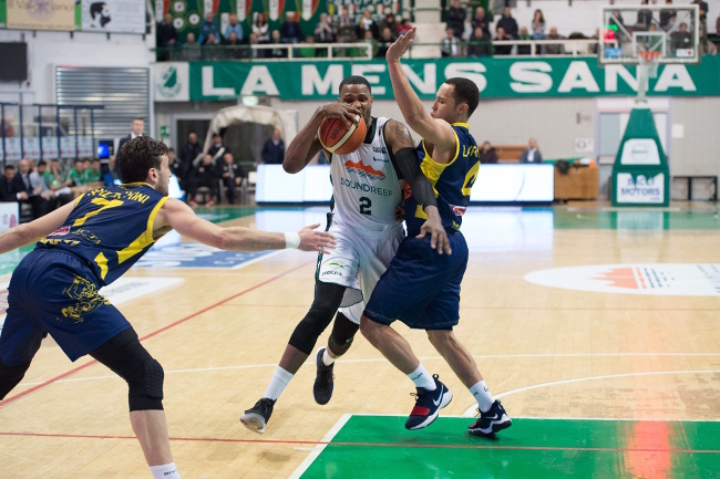 La Givova Scafati schiera dal primo minuto Lawrence, Spizzichini, Santiangeli, Ammannato e Sherrod. Con le nuove divise targate Macron, la Soundreef in campo con Saccaggi, Kyzlink, Sandri, Ebanks e Vildera. Equilibrio in avvio, con Santiangeli a segnare in penetrazione e Sandri in appoggio da sotto. Alla tripla di Santiangeli risponde Ebanks dalla stessa distanza (5-5 al 2’). Sherrod schiaccia il +2 ospite, ma è ancora Ebanks a pareggiare in elegante slalom. Primo break biancoverde, con la bomba di Kyzlink e successivo canestro più fallo subito, per il 13-7 dopo 4’. Vildera e Saccaggi allungano per il +10 al 5’. Reagisce Scafati con Lawrence dalla media, ma Kyzlink è preciso ai liberi (19-9 al 6’). Ebanks in arresto e tiro e Saccaggi in penetrazione danno il +14 Soundreef. L’ex Ranuzzi segna da sotto, ma Vildera risponde in gancio da centro area. La schiacciata in tap in di Ebanks regala il massimo vantaggio (27-11). Nell’ultima azione, Ranuzzi è rapido da sotto e chiude il primo quarto sul 27-13.