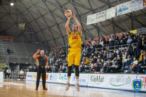 La compagine in maglia amaranto ha un buon impatto con la ripresa: grazie ai centri di Thomas e Poletti riducono le distanze (48-33 al 23’). La risposta gialloblù è nelle mani di De Laurentiis e Clarke, che, in meno di un amen, ristabiliscono le distanze (55-33 al 24’). Il rendimento costante tenuto dai suoi uomini permette a coach Rossi di ruotarli tutti, conservando comunque un ampio margine di distacco, che tra l’altro aumenta col trascorrere dei minuti (59-33 al 27’). Il punteggio alla fine del terzo quarto vede avanti i locali 68-41.