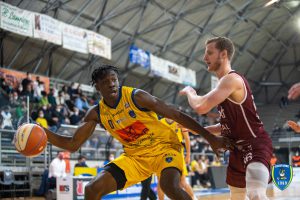 La sfida permane saldamente nelle mani dei locali, che continuano a menare le danze, nonostante le scorribande di Ferguson e Thomas, desiderosi di tenere in partita i salentini (34-25 al 14’). E’ un buon momento per i gialloblù che lavorano bene in difesa e concretizzano in attacco, trovando in Daniel un prezioso terminale su entrambe le fasi del gioco (40-25 al 16’). Il punteggio all’intervallo dà ragione agli uomini di coach Rossi, che raggiungono gli spogliatoi avanti 48-27.