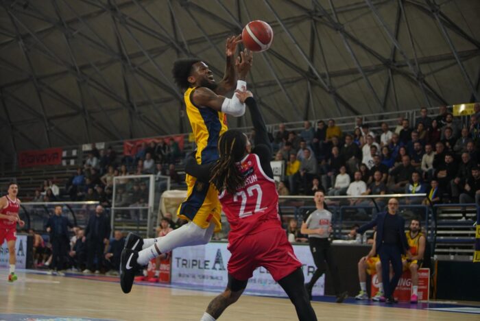 L’ultimo quarto parte con un sottomano di Gallo che batte Allen (58-51) portando i toscani a -7. Ma l’americano si vendica subito con una tripla: 61-51. La Givova è troppo macchinosa in attacco e non sempre riesce a trovare tiri aperti. Per quasi tre minuti nessuna delle due squadre segna, Vitucci chiama un time out per cercare di rimettere in sesto i meccanismi della sua squadra, ma è Johnson a metterne due (61-53). Subito però seguito da Fresno con una tripla, che rimette in doppia cifra la distanza tra le due squadre a cinque minuti dalla fine: 64-53. Altro parziale per Pistoia, break di 4-0, e gli ospiti arrivano a -7 (64-57). Poi addirittura a soli cinque punti di distanza a 100 secondi dalla sirena (69-64). I fantasmi delle passate partite casalinghe rischiano di aleggiare nuovamente sulla Beta Ricambi Arena – PalaMangano. Ma i gialloblu riescono a gestire il finale e la partita si chiude sul 77-71.