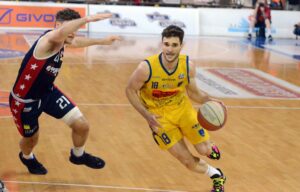 I tentativi di Davoe di far rientrare i suoi in partita si infrangono sul ferro. Ne approfittano i gialloblù per conservare un cospicuo margine di vantaggio (71-46 al 33’) e tenere gli avversari a debita distanza. Gli ultimi minuti della sfida, al di là dei centri di Bellan, regala poche emozioni, se non la possibilità per i giovani Perrino e Grimaldi di fare il proprio ingresso in campo nell’ultimo giro di lancette di una sfida che si conclude col punteggio di 77-59.