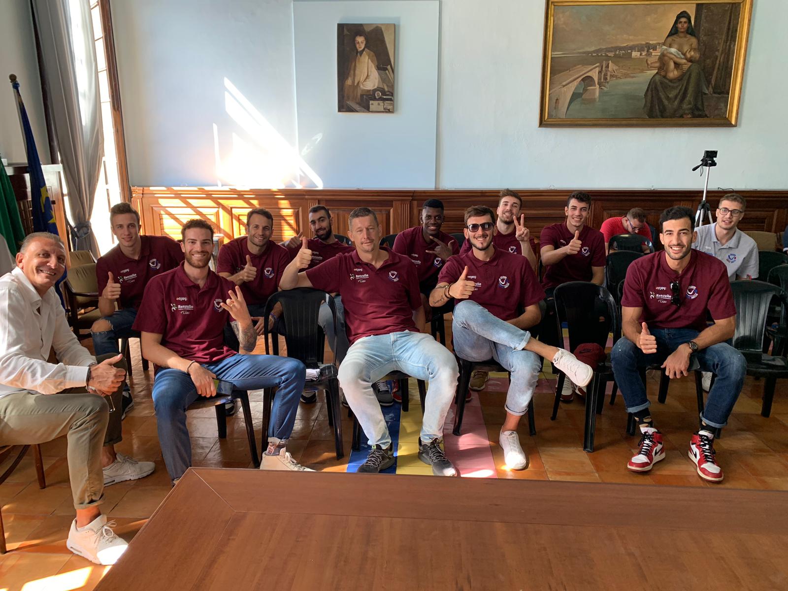 Scena da un… matrimonio. La Virtus Arechi si è presentata stamani alla stampa nelle sala giunta del Comune di Salerno. La squadra di basket del presidente Nello Renzullo parte con ambizioni di vertice nel prossimo campionato di serie B ed anche con la speranza di trovare “casa” quanto prima. La conferenza è slittata di un’ora per via di un concomitante matrimonio da officiare a palazzo di città. Il feeling con le istituzioni cittadine, però, sembra assolutamente saldo. Lo conferma il presidente Renzullo che non ha mai fatto mistero di aspettare buone nuove per la realizzazione di un palazzetto dello sport.