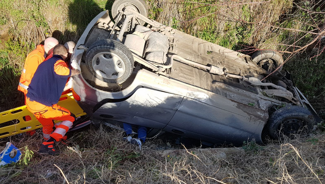 Incidente ieri pomeriggio lungo la Sp417 nel comune di Battipaglia. Una Matiz con a bordo tre donne di nazionalità rumena, per cause in via d’accertamento, si è ribaltata finendo in una scarpata. Sul posto sono giunti i sanitari del 118 che per prestare le cure hanno dovuto attendere l’intervento dei vigili del fuoco che hanno dovuto estrarre le tre malcapitate dal veicolo.
