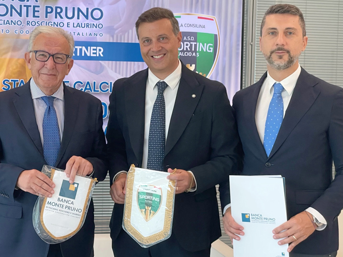 Nella giornata di ieri, presso la Sede Amministrativa di Sant’Arsenio, la Banca Monte Pruno e l’Associazione Sportiva Sporting Sala Consilina hanno sottoscritto l’intesa che conferma tra i partner della squadra di calcio a 5, per la stagione sportiva in partenza, l’istituto di credito cooperativo.
