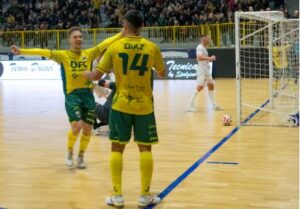 E’ un gol del capitano Carlos Dalcin a decidere la sfida tra l’Italservice Pesaro e la Feldi Eboli con un tiro dalla distanza imparabile per il suo collega dall’altra parte del campo. Con questa perla la Feldi Eboli passa per 1-2 al PalaMegabox e inanella il suo sesto risultato utile consecutivo, confermandosi al secondo posto solitario in campionato e anche miglior difesa della Serie A 2024/2025 con sole quattro reti subite.