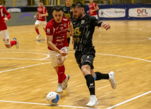 L’avvio è subito vivace. Dopo cinque minuti è la Feldi a sbloccare il risultato con Mateus, che lascia partire un sinistro improvviso che passa sotto le gambe di Siqueira e vale lo 0-1. La risposta della Meta è immediata: pochi secondi dopo Albertico trova il tocco sotto porta che ristabilisce la parità. La partita resta intensissima, con continui capovolgimenti di fronte. Il Catania va vicino al vantaggio con Musumeci, ma Caponigro salva sulla linea a Dalcin battuto. A poco più di cinque minuti dall’intervallo arriva un episodio chiave: calcio di rigore per i siciliani dopo un fallo di mano di Venancio. Dal dischetto si presenta Albertico, ma Dalcin è straordinario e neutralizza il tiro del numero 8 ospite. La Meta continua a spingere: Albertico ha una grande occasione da pochi passi ma centra il palo, mentre Dalcin si supera ancora con un intervento decisivo sull’ennesimo tentativo di Musumeci. Nel finale di frazione la Feldi supera il limite dei falli e concede un tiro libero agli avversari. Mister Antonelli inserisce Glielmi tra i pali per l’occasione: Musumeci calcia, ma il pallone si stampa sul palo.