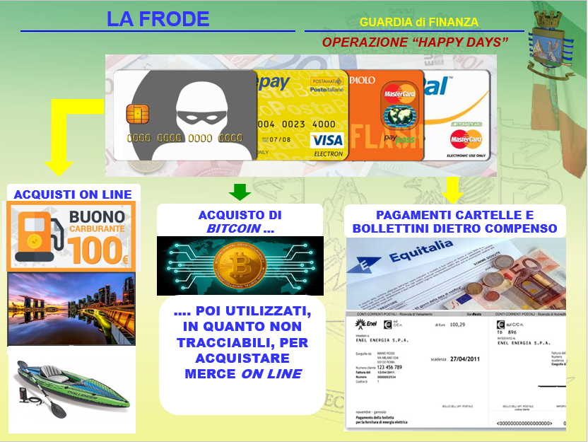 Per non essere individuati, in altri casi compravano on line anche i bitcoin, poi utilizzati per 1’acquisto di altra merce su piattaforme di e-commerce, nel piu assoluto anonimato.