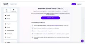 | Pacchetto di benvenuto | Tutti i siti di gioco propongono un’offerta speciale sulla prima ricarica. A volte, il pacchetto può comprendere più depositi. Slott.com offre un bonus di benvenuto del 200% + 75 FS sul primo versamento. L’importo massimo ricevibile è di ben 20.000 EUR. |