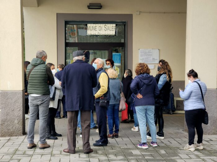 Stamani in via Madonna di Fatima, nella zona orientale della città, dove ha sede il servizio demografico del Comune di Salerno erano tante le persone in fila, una giornata come tante altre, anche in considerazione del fatto che l’ufficio è uno dei pochi della città dove i cittadini possono richiedere certificati e carte d’identità.