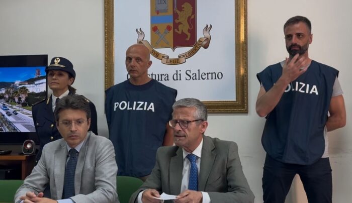 Cinque furti dal 3 giugno al 1 luglio, l’ultimo dei quali è i colpo al panificio Mulino Urbano di piazza XXIV Maggio. Ma nello stesso periodo, altri colpi sarebbero avvenuti anche in altri comuni della provincia e ad Avellino. Tanti da far parlare il questore di Salerno, Giancarlo Conticchio che in una conferenza stampa nel pomeriggio di oggi ha voluto elogiare il lavoro dei suoi uomini e della procura che sono arrivati ad identificare l’autore dei furti, definirlo il novello Arsenio Lupin. D.G. 38 anni originario di Cardito puntava alle casse degli esercizi commerciali nei quali penetrava attraverso una serie di effrazioni alle saracinesche e alle vetrate. Sfrontato tanto da da non coprirsi mai il volto.I colpi che gli vengono attribuiti sono quello al Alla pizzeria capperi che pizza nella zona industriale, Non ti pago, il distributore di monete alla galleria mediterranea ed una società per spedizione pacchi, unico luogo dove il ladro ha portato via anche dei pacchi, oltre al denaro. Su Salerno, il ladro poteva contare sul supporto di una ragazza, originaria di Salerno che sarà denunciata. Il questore, con affianco il dirigente della squadra Mobile Barbati ha utilizzato la conferenza stampa anche per ribadire una serie di messaggi prima fra tutti quello di chiedere alle persone che assistono a questi furti di denunciare subito e allo stesso tempo a chi li subisce ad evitare di divulgare le immagini dei sistemi di videosorveglianza che suggeriscono agli autori di liberarsi degli abiti utilizzati per i colpi, sottraendo così alle indagini degli elementi di colpevolezza.