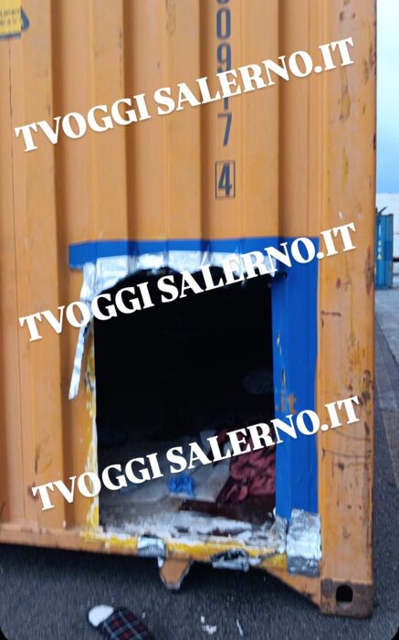 la piccola sulla sedia a rotelle. Ma non si esclude che all’interno potessero esserci altre persone che sono riuscite a fuggire via prima dell’arrivo delle forze dell’ordine. C’è, infatti, questa corda di fortuna realizzata con gli stracci e si intravede ancora tra i contenitori che un pezzo della corda si è rotta. Forse il piano prevedeva che tutti o quasi si sarebbero allontanati fino a quando la corda non si è spezzata e ha reso necessario chiedere l’intervento attraverso il 118. I dettagli e probabilmente le storie di sofferenza compresa quella della piccola disabile usciranno fuori una volta che dopo le cure attraverso le loro testimonianze si cercherà di risalire a tutto il viaggio e a come è stato possibile che in maniera clandestina giungessero nel porto di Salerno.