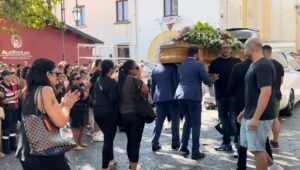 L’uomo l’ha picchiata e poi strangolata, fino alla morte: è stata l’autopsia, ieri, a raccontare l’orrore che la donna ha dovuto subire da chi diceva di amarla. Tutta la comunità si è stretta, anche oggi, intorno ai familiari di Tina e in particolar modo ai suoi tre figli nati da una precedente relazione. “Il nostro cuore – ha detto nel corso dell’omelia Alfonso Raimo, vescovo ausiliare di Salerno-Campagna-Acerno – è attraversato dal dolore. Tina era una giovane mamma, strappata alla vita in maniera crudele e ingiusta, vittima di quella piaga che ormai chiamiamo con un nome preciso: femminicidio. Per noi, però, non è un termine astratto, ma è un volto, una storia, una madre che amava i suoi tre figli che ha visto spezzato il filo della sua esistenza in un atto di inaudita violenza. La violenza non è mai la soluzione. Non lo è nei rapporti tra i popoli, tra gli Stati, tra le mura di casa, nei legami più intimi e sacri.