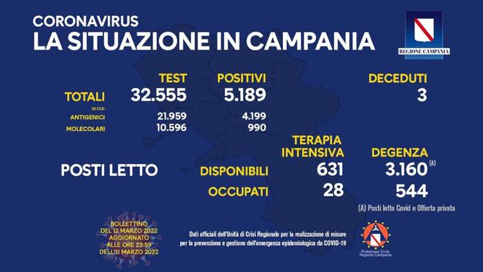 In aumento di tre unità il numero dei posti letto di terapia intensiva occupati (28 a fronte dei 25 di ieri). Meno uno, invece, per quanto concerne i posti letto di degenza occupati che sono 544 a fronte dei 545 di ieri.