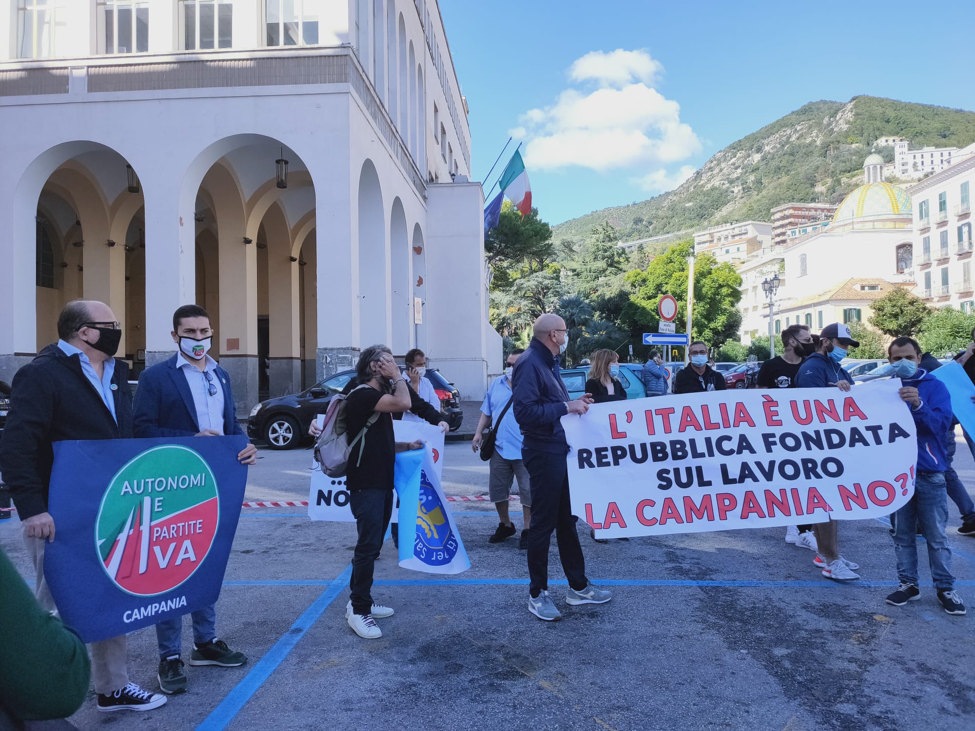 Annullare la chiusura alle ore 23 dei locali pubblici, eliminare il divieto di vendita per asporto dopo le 22, attivare maggiori controlli in strada dove si individuano assembramenti, concedere straordinariamente la copertura degli spazi esterni per il covid-19. Sono i quattro punti richiesti e sottoposti alla regione Campania attraverso un documento unitario dell’associazione commercianti per Salerno che stamani ha tenuto in piazza Amendola un flash mob contro la decisione del governatore della Campania Vincenzo De Luca che con l’ultima ordinanza ha disposto nuove restrizioni a un settore già duramente penalizzato dal lockdown.