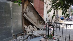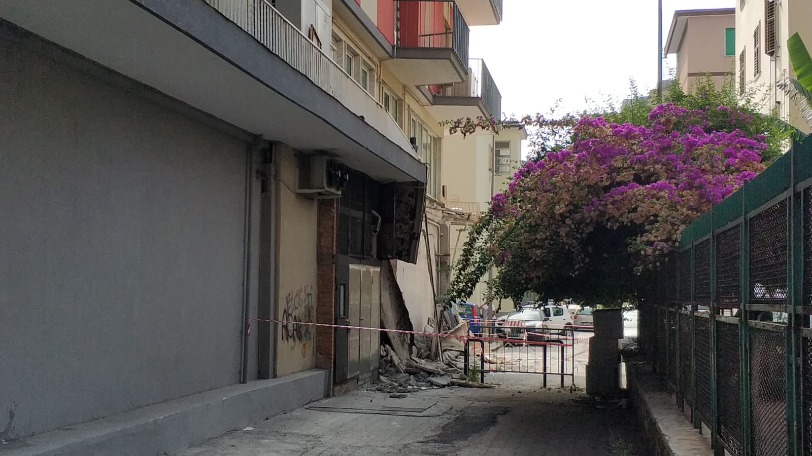 Un forte rumore, un cedimento strutturale. Questo quanto raccontano i condomini dello stabile di Torrione. Erano le 7,30 di questa mattina quando all’improvviso il balcone al piano ammezzato dell’edificio in via Marino Freccia, meglio noto come il palazzo dell’ex Sala Pitti è venuto giu’, con un consistente tratto di solaio del balcone che ha lasciato penzolante la ringhiera in ferro.