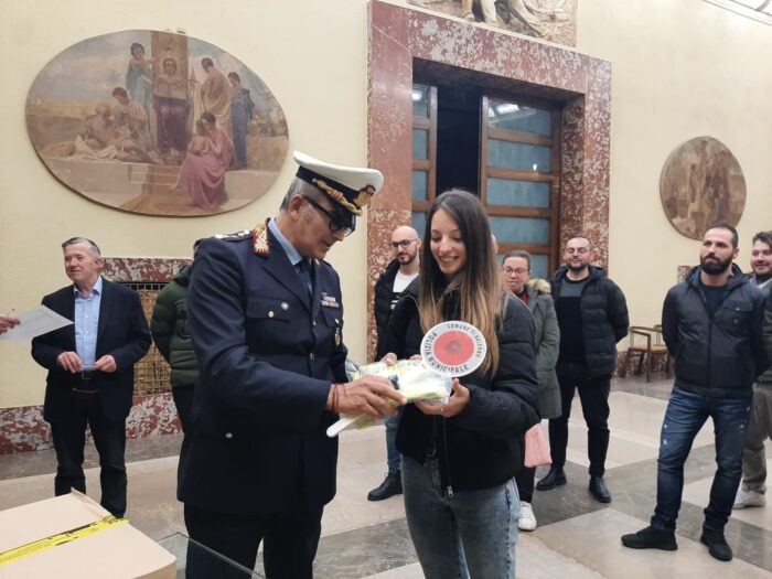 Prenderanno servizio domani, venerdì 23 dicembre, i vigili stagionali assunti a tempo determinato e parziale fino al 31 gennaio 2023, mediante selezione pubblica per esame svoltasi gli scorsi 13 e 14 dicembre. Questa mattina a Palazzo di Città in 14 hanno firmato gli atti e preso possesso delle dotazioni necessarie per essere operativi sin da domani. Nei prossimi giorni si scorrerà la graduatoria fino ad un numero complessivo di 25 unità: la firma del secondo gruppo avverrà il giorno 27 dicembre con contratto decorrente dal giorno successivo e fino al 31 gennaio.