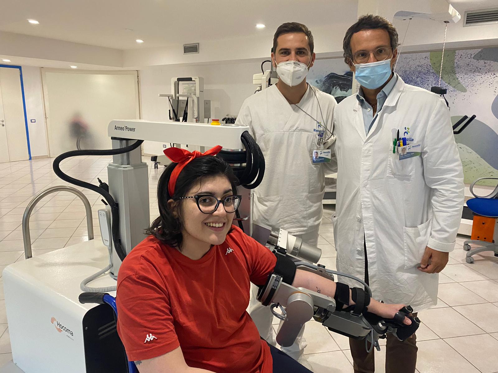 Enza oggi ha 27 anni. Si è risvegliata dal coma dopo la rottura di un angioma al cervello un anno fa. Un sorriso e tanta voglia di ricominciare segnano il suo cammino che ha incrociato nel percorso di riabilitazione il Renzullo Centro di Riabilitazione di Sarno. La struttura al momento è tra le poche in Italia ad essersi dotata di Armeo Power un esoscheletro robotizzato