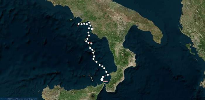 L’hanno seguita grazie a un ricevitore satellitare per scoprire che la tartaruga marina Caretta Caretta, chiamata Eleonora, ha percorso 520 chilometri in 18 giorni. Salvata dall’Area Marina Protetta di Punta Campanella e rimessa in mare il 19 febbraio, si trova ora al largo delle coste siciliane, tra Messina e Milazzo.