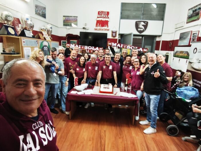 L’amore per la Salernitana, ma anche la voglia di stare insieme e di operare con impegno e presenza nel sociale. Il club Mai Sola del presidente Antonio Carmando ha festeggiato i dieci anni di attività nella sede di via Pagano a Fratte, dove i soci si sono ritrovati in clima di festa. Il taglio della torta ha reso ancora più dolce un momento di condivisione di una passione tutta granata che è motore e pretesto per stare insieme e per promuovere iniziative a sfondo sociale. La prossima si terrà il 13 giugno e consisterà nella donazione di un secondo defibrillatore per la comunità di Fratte.