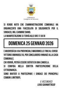 Nel frattempo, l’inchiesta sull’aggressione del 26 dicembre, avvenuta sotto l’abitazione del sindaco nel giorno di Santo Stefano, passata al vaglio della Direzione Distrettuale Antimafia va avanti.  I carabinieri stanno ricostruendo con attenzione la dinamica dell’episodio ritenuto dagli inquirenti un possibile atto intimidatorio legato all’attività amministrativa. Domenica, intanto, Castiglione del Genovesi accenderà le fiaccole per ribadire un messaggio chiaro: le istituzioni non si piegano alla violenza.