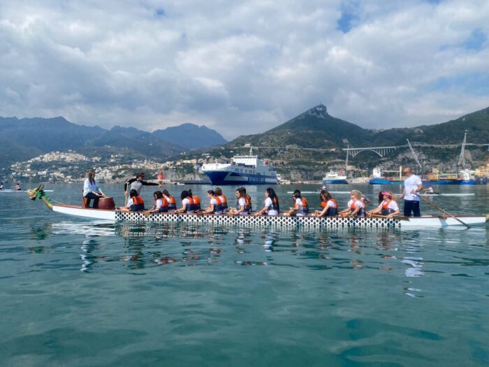 Venti donne dell’Associazione Angela Serra per la Ricerca sul Cancro di Salerno  parte del progetto “Dragon Boat in Rosa” e  dell’ASD Salernitana Femminile 1970 e la sezione Women dell’ US Salernitana 1919 hanno pagaito nella acque antistanti il porto di Salerno rendendosi protagoniste di una bella iniziativa promossa al fianco del Circolo Canottieri Irno di Salerno.