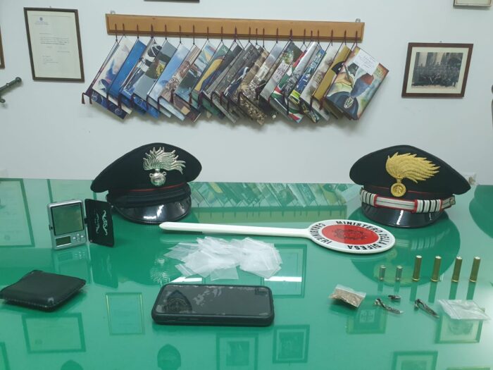 Nel corso del fine settimana i Carabinieri della Compagnia di Amalfi hanno attuato numerosi controlli alla circolazione stradale al fine di prevenire e reprimere la commissioni dei reati. In quest’ottica è stata posta particolare attenzione al traffico veicolare proveniente dall’Agro Nocerino sarnese, da sempre zona di afflusso nei weekend di turisti giornalieri. Nell’ambito di queste attività, nella serata di domenica i Carabinieri della Stazione di Tramonti hanno sorpreso un minorenne in possesso di hashish pronta per essere spacciata: quando i militari lo hanno fermato, in sella al suo scooter proveniente dal valico direzione Maiori, con a bordo un amico, il reo è apparso fin da subito nervoso ed un po’ impacciato. A questo punto gli operanti hanno voluto vederci chiaro ed hanno sottoposto i ragazzi ad una perquisizione personale e veicolare, durante la quale hanno scovato, ben nascoste in una mascherina chirurgica, 3 dosi di hashish confezionare, mentre nel controllare il mezzo, all’interno del sottosella, hanno trovato un bilancino di precisione, numerosi bustine in cellophane utili a confezionare le dosi ed alcuni proiettili marca Fiocchi a pallini e a salve. Condotti in caserma per la redazione degli atti ed invitati i genitori, accertate le responsabili del più grande dei due, 17enne, è per lui scattata la denuncia al Tribunale per i minorenni di Salerno per detenzione ai fini di spaccio di droga e detenzione abusiva di munizioni. Gli atti redatti sono poi stati inviati in Procura per la convalida dei sequestri e le ulteriori indagini del caso.