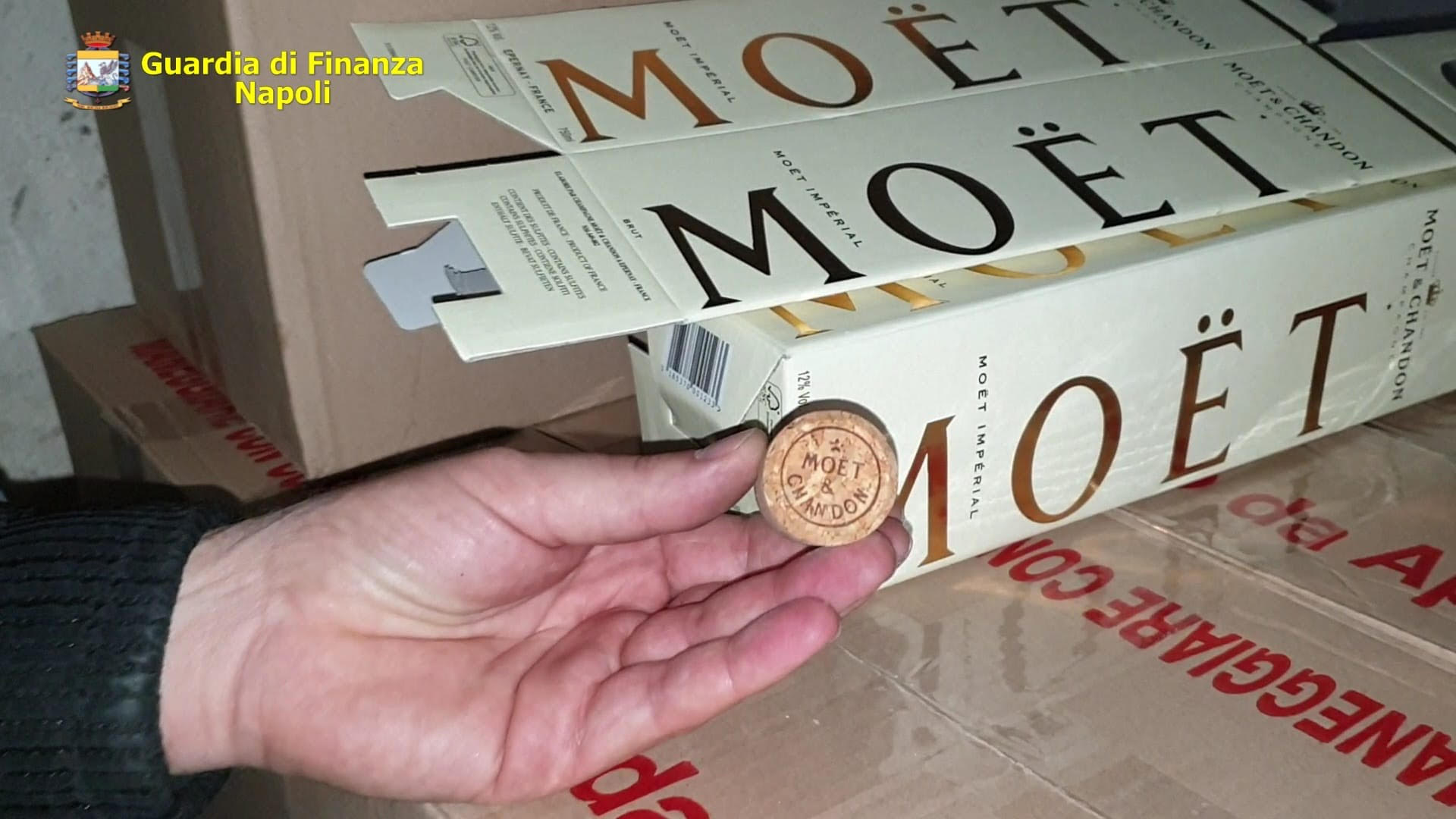 Sequestrate 774 bottiglie di champagne, 804 di olio “SAPIO” e di alcool etilico delle distillerie “LA SORGENTE” e “FIUME”, nonché 129.400 accessori per il confezionamento, fra tappi, etichette, contenitori in cartone, capsule copri-tappo in alluminio, con loghi e falsi marchi “MOET & CHANDON”, “OLIO SAPIO”, “OLIO SAN COLOMBANO” e “MADE IN ITALY”.