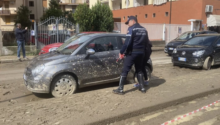 Parte della zona orientale del Comune di Salerno si è svegliata così, immersa nel fango. Il violento nubifragio che ha colpito la città di Salerno, ieri di scena nella vetrina nazionale del Giro d’Italia come tappa finale, ha provocato l’esondazione del Torrente Mercatello e determinato una colata di fango su via Limongelli ed in altri punti della città, provocando problemi alle auto parcheggiate, ai negozi e alla circolazione stradale. Al lavoro i vigili del fuoco ed i vigili urbani sotto le indicazioni di Matteo Picardi, direttore generale del Comune di Salerno, giunto di persona sul posto per verificare l’emergenza. Chiuso anche il sottopasso che porta su via Mauri. Detriti e fango ben visibili anche sul mare che ha assunto una colorazione marrone proprio a causa del maltempo e di quanto arrivato dei fiumi. Piccoli smottamenti anche in più punti nel quartiere di Giovi.