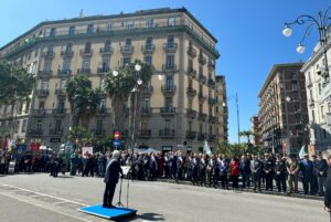 Il Prefetto – ricordando i 20 mesi che vanno dall’8 settembre 1943 al 25 aprile 1945, che hanno visto Salerno protagonista in Italia, dove sono state gettate le basi per il futuro della nostra Repubblica e della Costituzione – ha evidenziato: “Il 25 aprile 1945 è stata riconquistata la libertà, la pace, l’indipendenza ed è stato riunito il Paese. Proprio qui, a Salerno, si sono gettate le basi su cui poi si sarebbe fondata la Costituzione repubblicana, decidendo di eleggere, a suffragio universale, l’Assemblea Costituente. Sui valori della nostra Carta Costituzionale, primi tra tutti il rispetto della dignità umana, l’uguaglianza e la pace si è ricostruita l’Italia. Oggi, più che mai, mentre intorno a noi, purtroppo, soffiano venti di guerra siamo tutti chiamati in causa per affermare con forza quegli ideali di pace e solidarietà che unirono i nostri Padri Costituenti”.