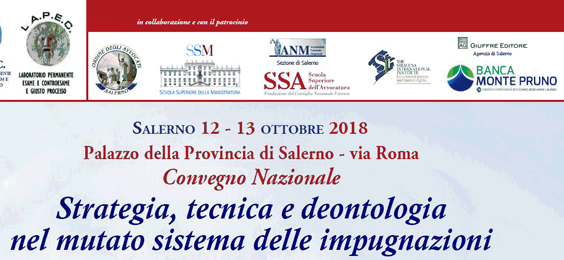 Il 12 e 13 ottobre prossimi, infatti, presso il Palazzo della Provincia di Salerno, Sala Bottiglieri, avrà luogo una due giorni dedicata ad un Convegno nazionale dal titolo “Strategia, tecnica e deontologia nel mutato sistema delle impugnazioni”.