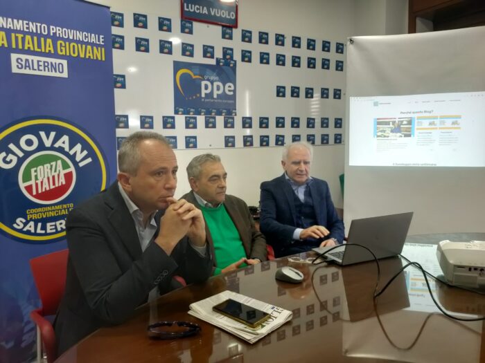 Così’ questa mattina il professore Giuseppe Fauceglia, coordinatore cittadino di Forza Italia, nel corso di una conferenza stampa promossa da Forza Italia Giovani Salerno per illustrare le finalità della nascita del blog, alla presenza del capogruppo al Comune di Salerno di Forza Italia Roberto Celano e del responsabile della comunicazione Franco Opromolla.
