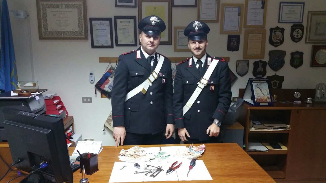 I Carabinieri della Compagnia di Eboli diretti dal capitano Alessandro Cisternino hanno arrestato quattro persone responsabili di furti in appartamento a San Gregorio Magno. I malfattori dopo aver consumato due furti in appartamento sono stati intercettati a bordo di una Fiat Brava dalla pattuglia della locale Stazione ma per tutta risposta hanno speronato il veicolo militare e successivamente tamponato una vettura in transito per guadagnarsi la fuga. L’immediato inseguimento, al quale hanno preso parte le pattuglie automontate delle Stazioni di Buccino, Sicignano, Colliano e Contursi, è terminato al bivio di Palomonte dove i malfattori hanno abbandonato il veicolo e tentato la fuga a piedi mescolandosi tra la gente che partecipava ad un funerale. I militari li hanno quindi individuati e tratti in arresti recuperando il bottino ammontante a circa euro 4000 sottratti ad una coppia di pensionati del posto a cui sono stati riconsegnati. Inoltre all’interno del veicolo sono stati rinvenuti attrezzi da scasso e chiavi universali per serrature. Gli arrestati, tutti pregiudicati, sono stati associati al carcere di Salerno
