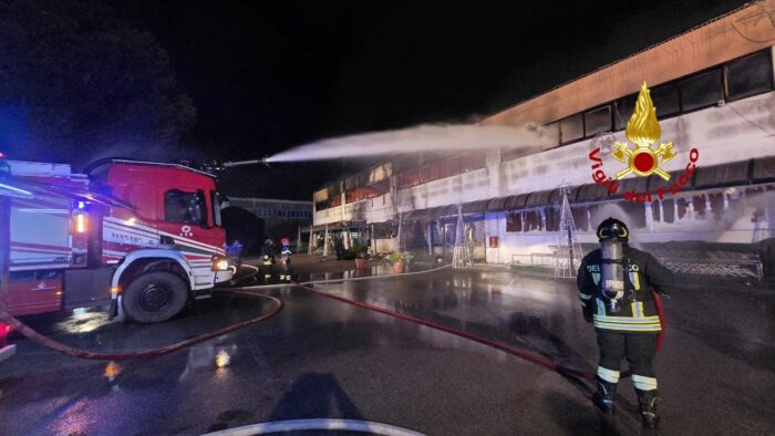 Sul posto sono giunti i Vigili del Fuoco con ben cinque squadre. La struttura, denominata Mercatone 99, attività commerciale gestita da cinesi, è stata interamente avvolta dalle fiamme, ed è andata quasi completamente distrutta.