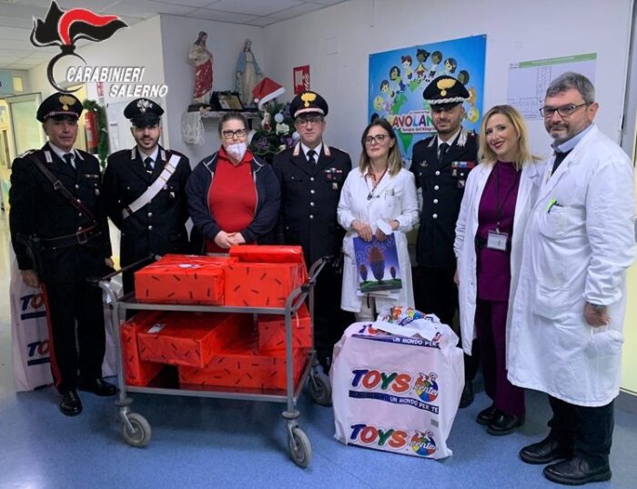 I Carabinieri del Comando Provinciale di Salerno hanno consegnato, in occasione del Natale, giocattoli ai piccoli pazienti ricoverati all’Ospedale di Salerno.